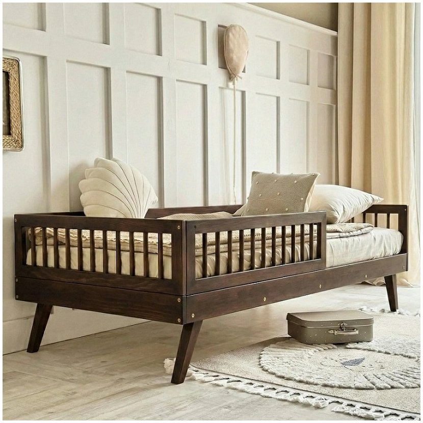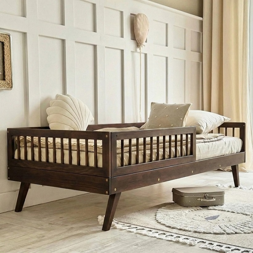 přední snímatelná zábrana - viditelné dodatečné otvory v rámu postele