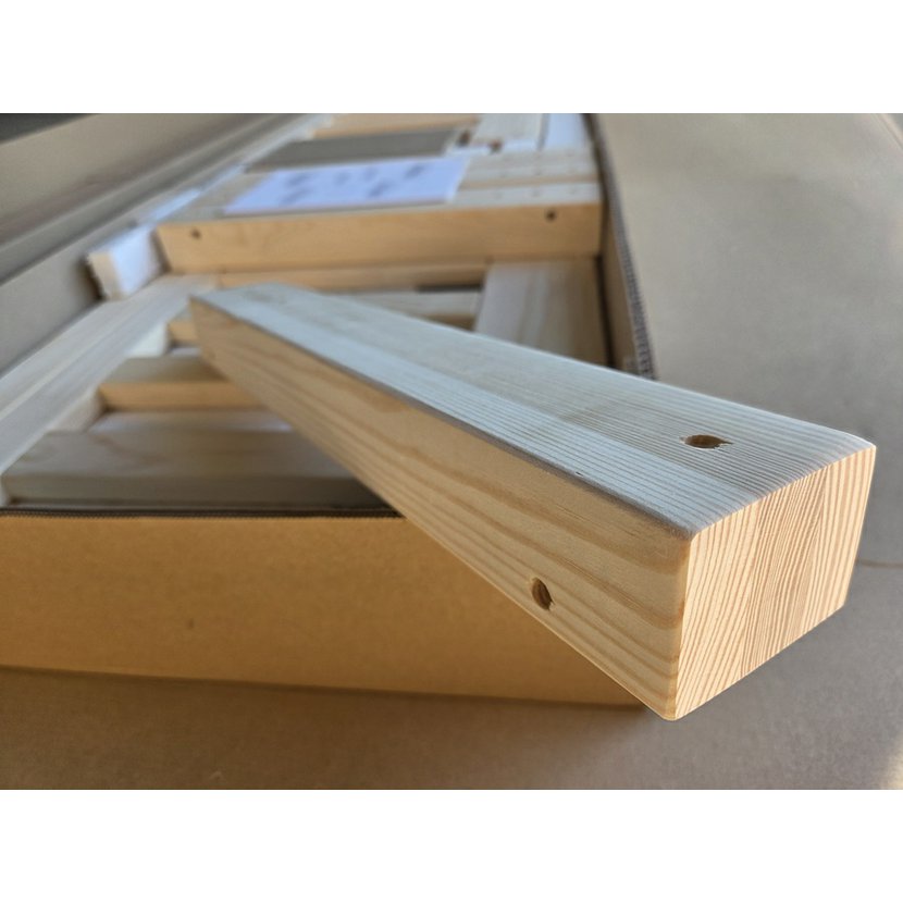 rošt je součástí, každá z latěk se připevňuje zvlášť šrouby přímo k posteli