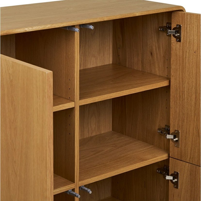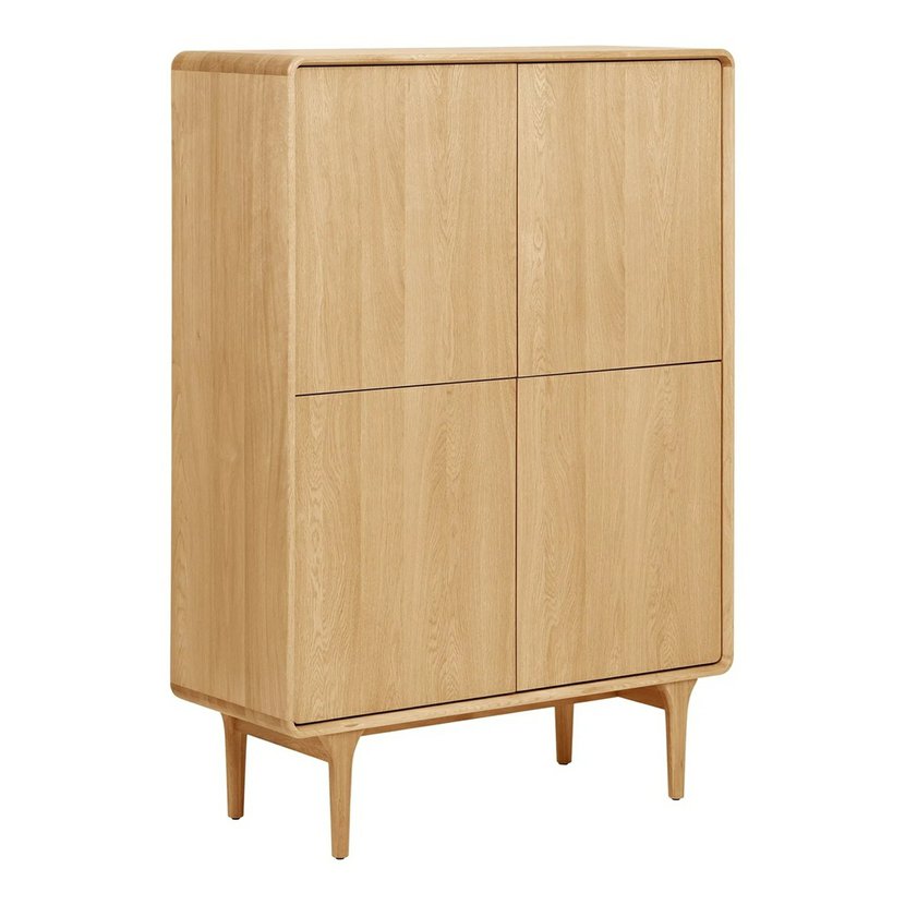 Stylová a praktická komodaDarwin je elegantní úložné řešení pro váš domov, které spojujeskandinávský design s funkčností. Vyrobena z kvalitních materiálů v přírodním světlém dubovém dekoru, tato vysoká komoda nabízíčtyři dvířka a systém vnitřních polic, což poskytuje dostatek prostoru pro uložení knih, dekorací, textilu, nádobí nebo dalších nezbytností. Je ideální doobývacího pokoje, jídelny, ložnice i pracovny, kde přinese pořádek a harmonický vzhled. Její nadčasový design se snadno kombinuje s dalším interiérovým nábytkem.