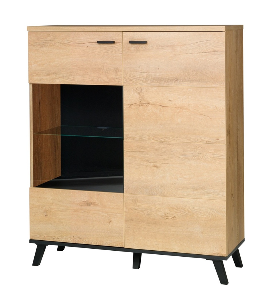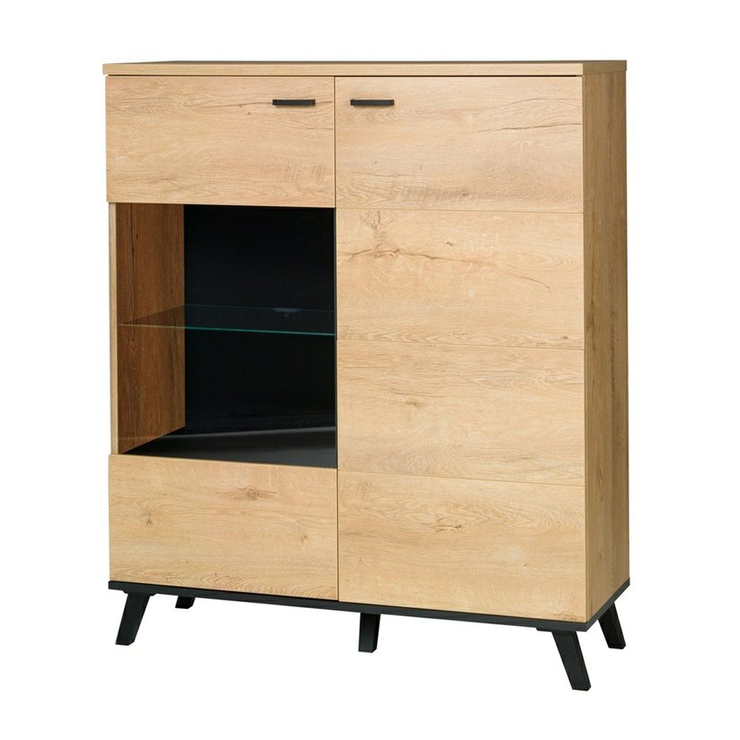 Dvoudvéřová komoda s prosklenými dvířky John 4 s osvětlením - dub lefkas /…