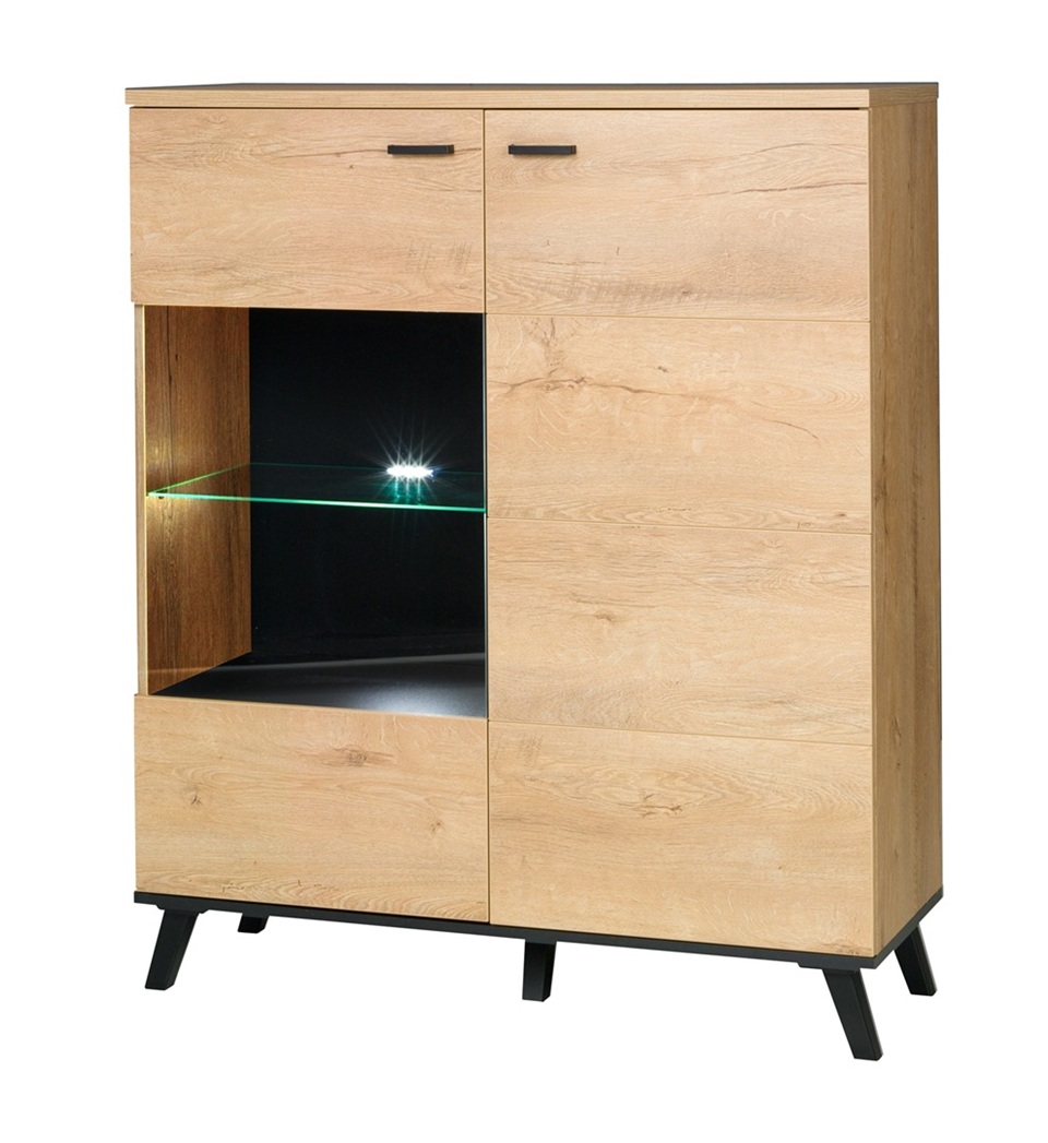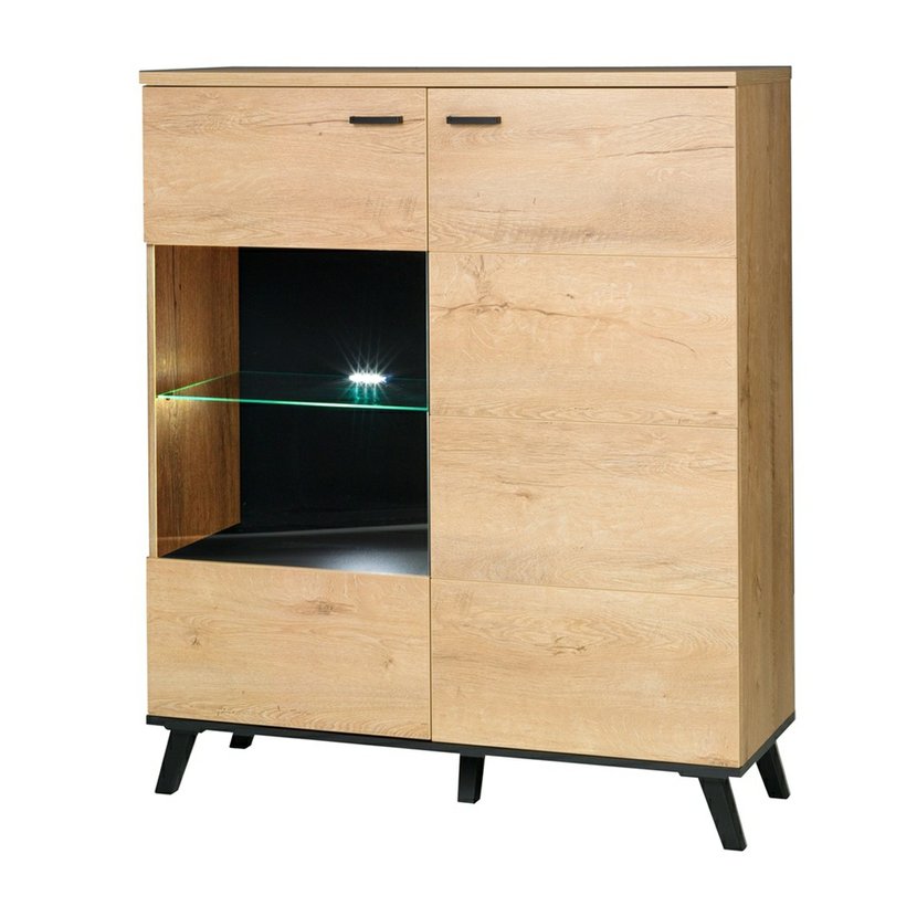 Dvoudvéřová komoda s prosklenými dvířky John 4 bez osvětlení - dub lefkas /…
