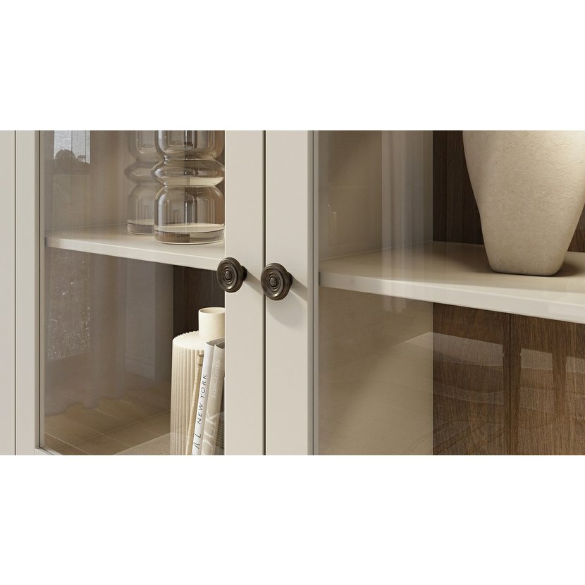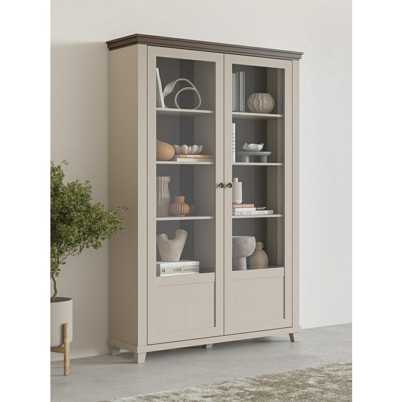 Vitrína nabízí prosklená dvířka pro elegantní vystavení dekorací, knih či sběratelských předmětů, doplněná o uzavřené úložné části pro praktické uskladnění méně dekorativních věcí. Díky kvalitnímu provedení je zaručena pevnost a trvanlivost.