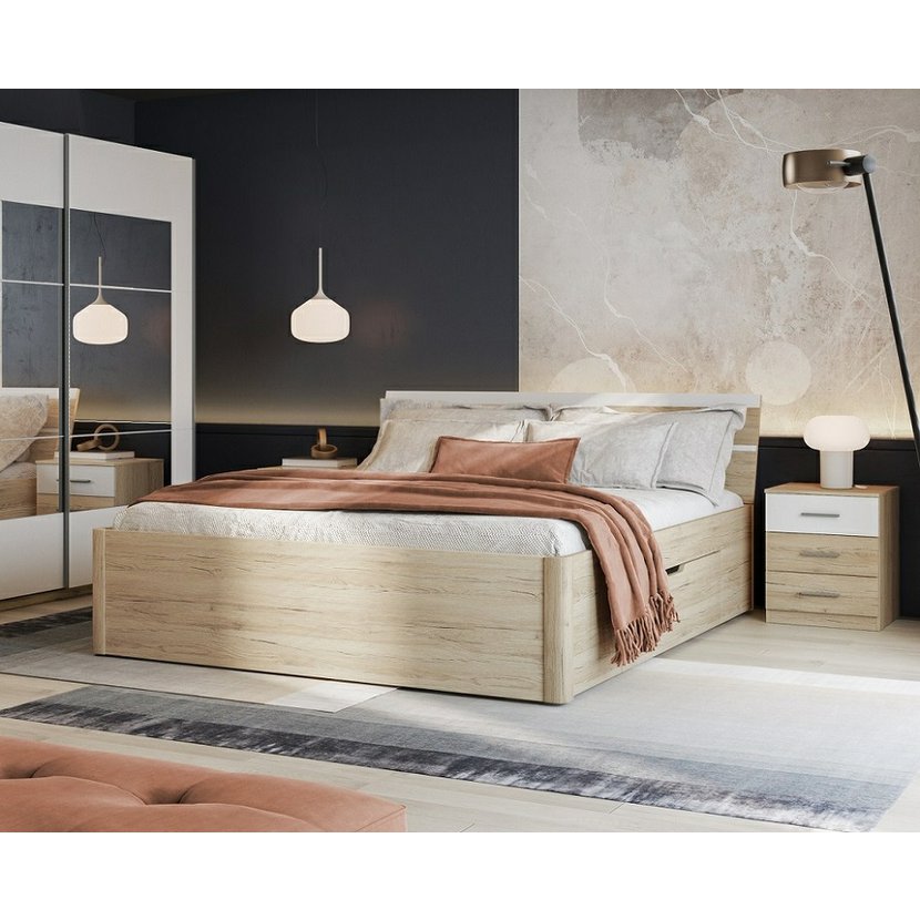 Parametry produktu Dvoulůžková postel Beta 180 x 200 cm - dub san remo světlý s bílou, úložný prostor