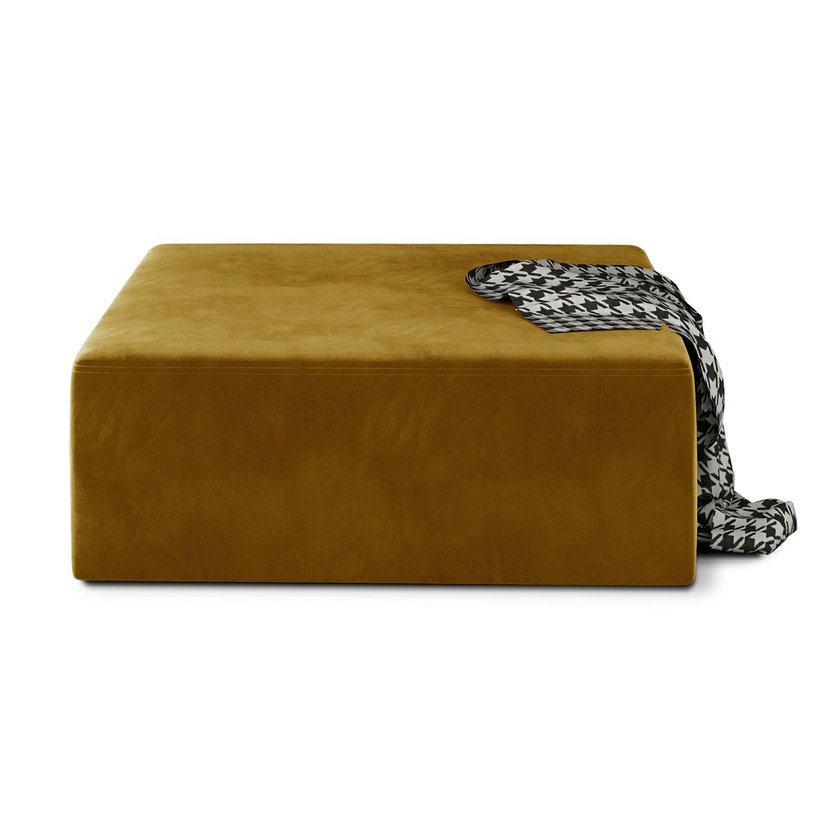 Rozjasněte svůj interiér teplým akcentem s taburetem Kelim v hořčicově žlutém sametovém čalounění. Tento prostorný čtvercový taburet spojuje pohodlí, eleganci a praktičnost – je ideální jako podnožka, extra sezení pro hosty nebo stylový doplněk do vašeho obývacího pokoje. Sametová látka s jemným leskem dodává taburetu nádech luxusu a v kombinaci s výrazným odstínem žluté vytváří v prostoru příjemně hřejivou atmosféru. Díky univerzálnímu designu jej snadno sladíte s moderními, retro i skandinávskými interiéry.