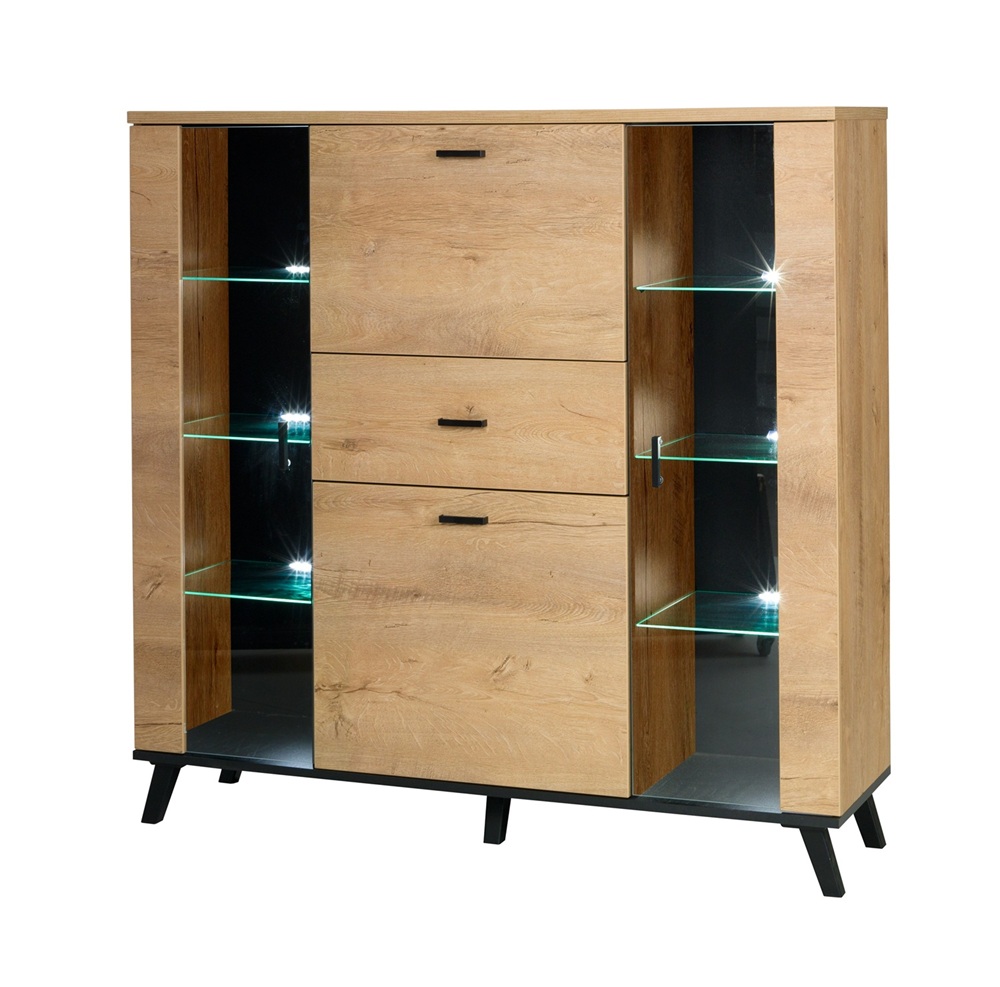 Kombinovaná komoda John 3 bez osvětlení - dub lefkas / černá