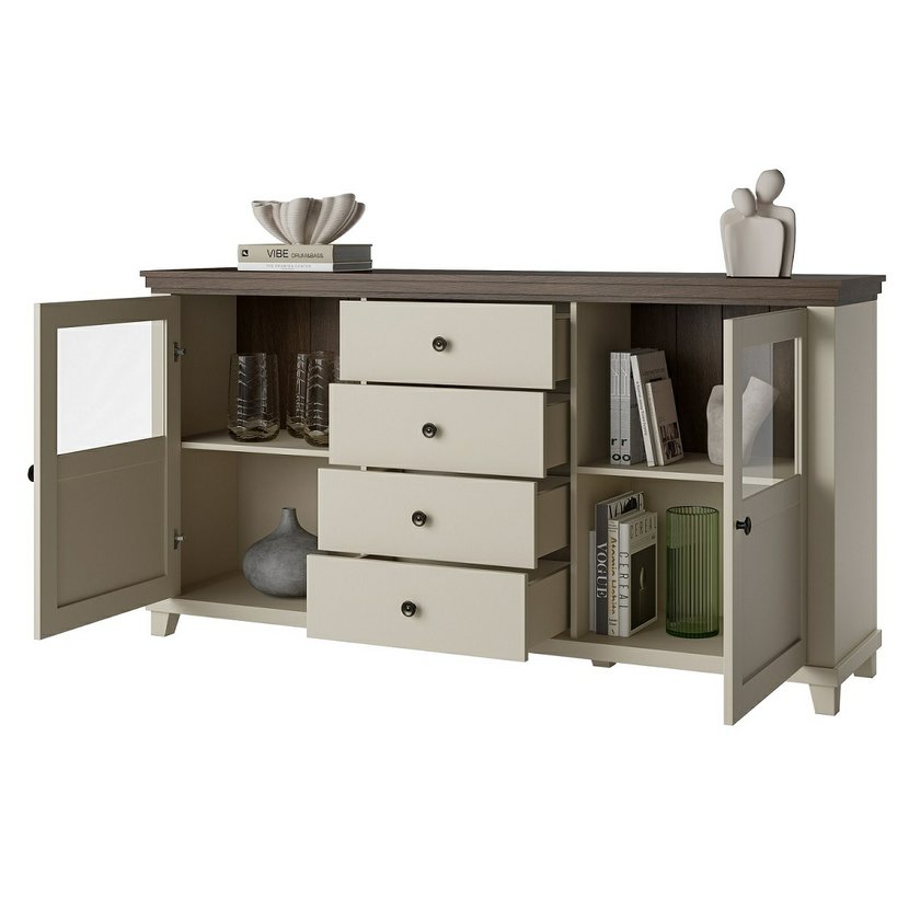Představujeme elegantní komodu Evora 1 v jemném světlém béžovém provedení, harmonicky kombinovanou s teplým dekorem dubu dunin. Tato kombinace vytváří nadčasový, příjemný vzhled, který dodá interiéru světlost, vzdušnost a přirozený kontrast. Komoda nabízí prostorné zásuvky i dvířka pro snadné i skryté uložení věcí, což zaručuje pevné a praktické uspořádání. Matná povrchová úprava podtrhuje decentní vzhled a umožňuje komodu snadno sladit s okolním nábytkem. Komoda Evora 1 je ideálním řešením pro obývací pokoj, ložnici či předsíň - stylový a zároveň funkční kus nábytku, který zaujme jemností a praktičností.