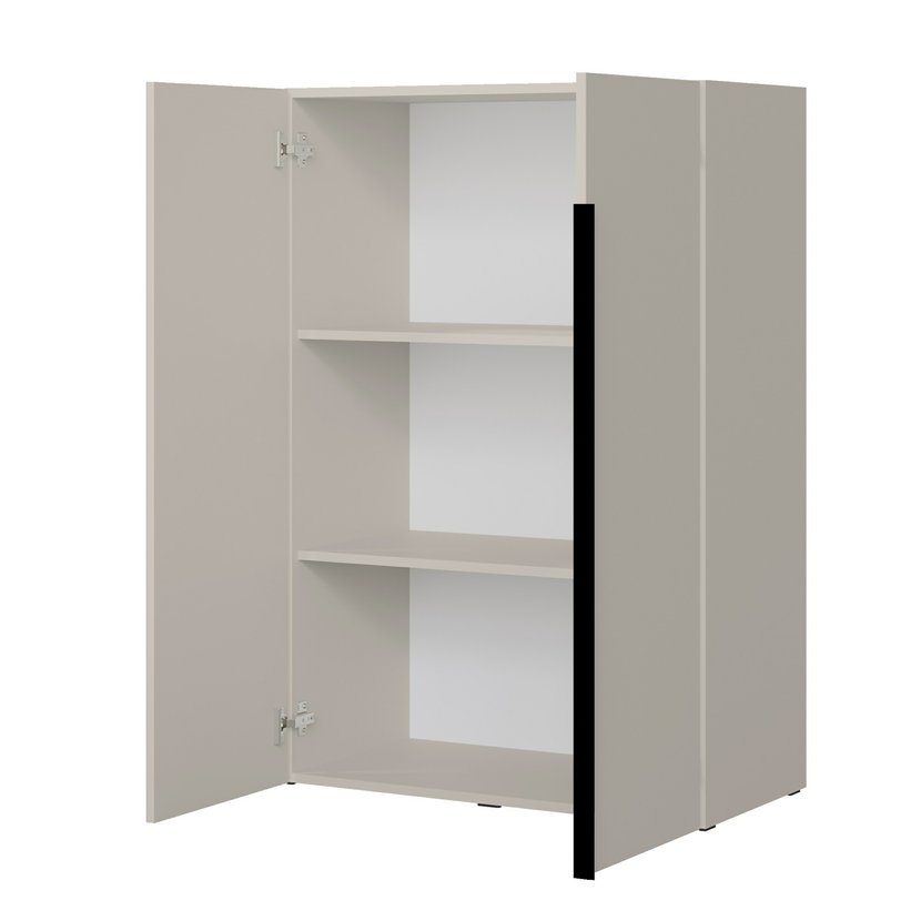 Elegantní komoda Slim – kašmír, s policemi a kovovým úchytem