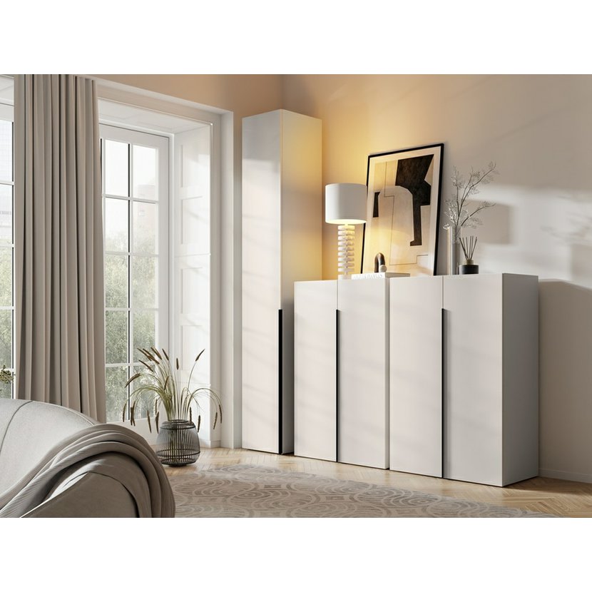 Stylová komoda ze série Slim v jemném kašmírovém odstínu je ideálním doplňkem do moderního interiéru. Její čistý design, úzký profil a praktické vnitřní členění z ní dělají perfektní řešení do ložnice, předsíně i obývacího pokoje. Korpus je vyroben z kvalitního lamina, které je odolné a snadno se udržuje. Uvnitř komody najdete praktické police pro uložení oblečení, dokumentů, doplňků či drobností.