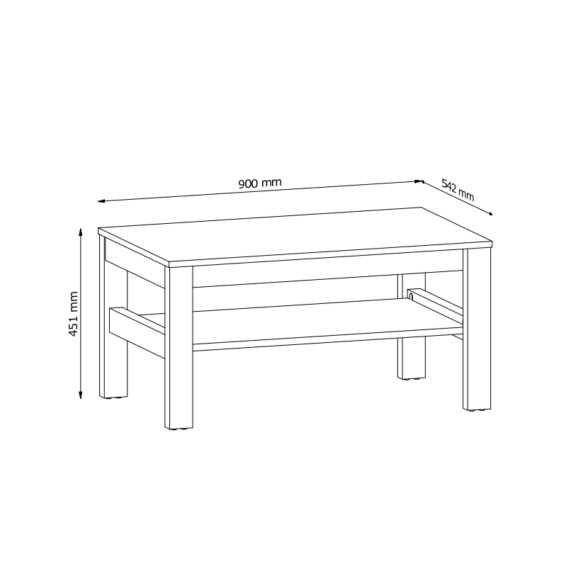 síla materiálu: horní deska 16 mm / police 18 mm / nohy 36 mm