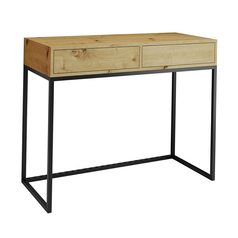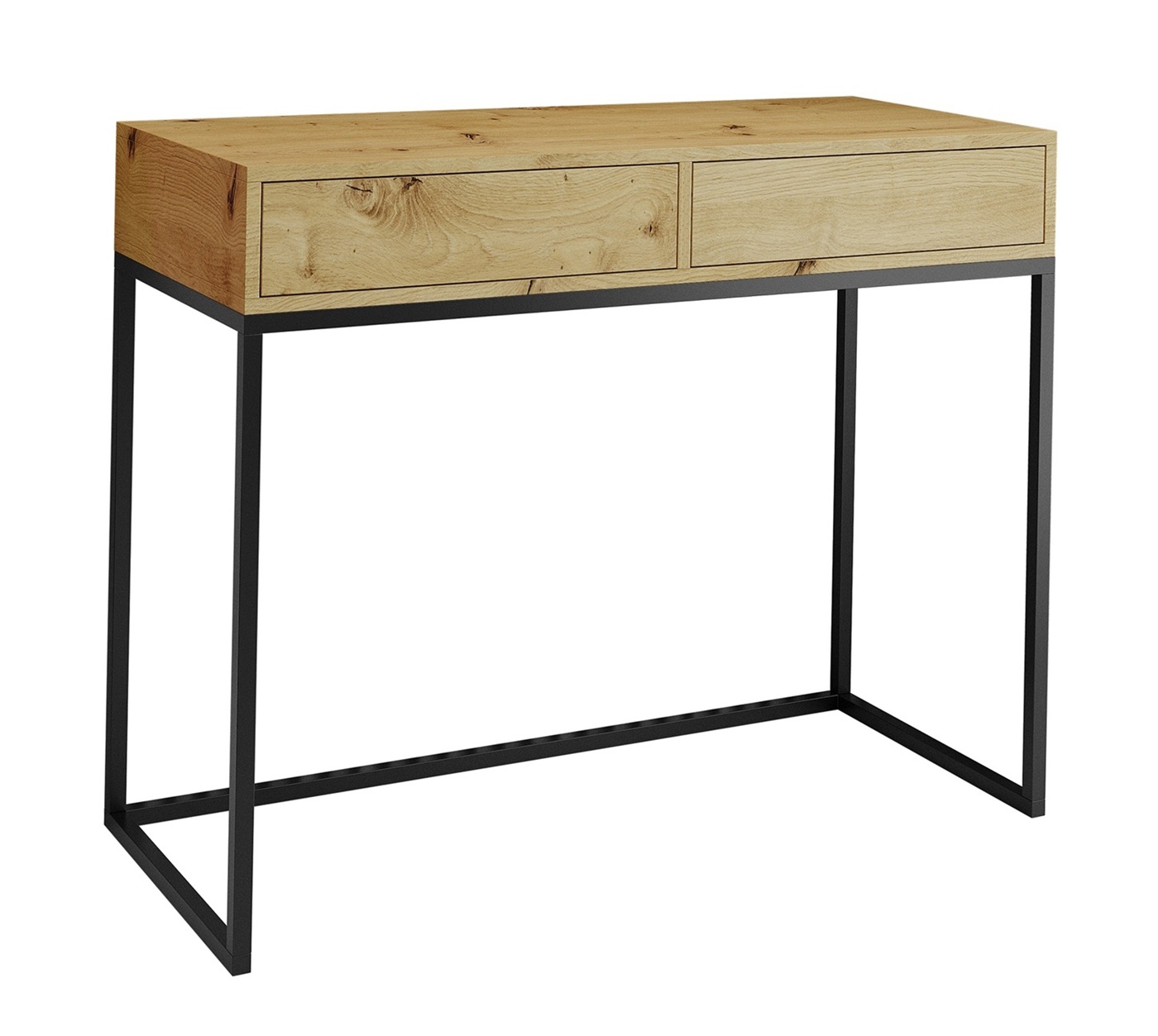 Konzolový stolek SKM2 – dub wotan, černý kov a 2 šuplíky pro maximální praktičnost
