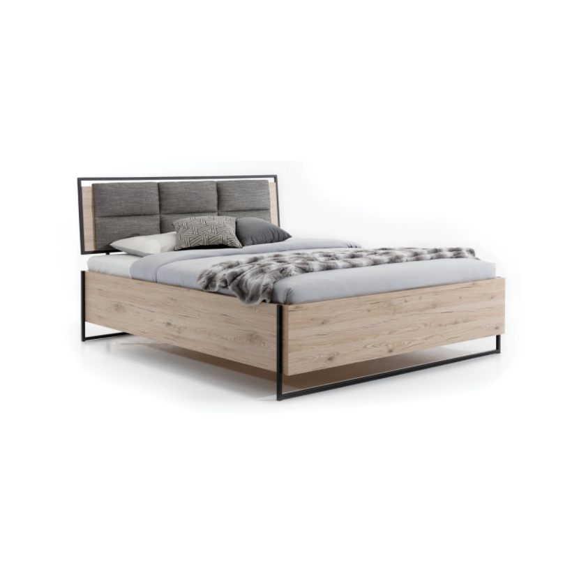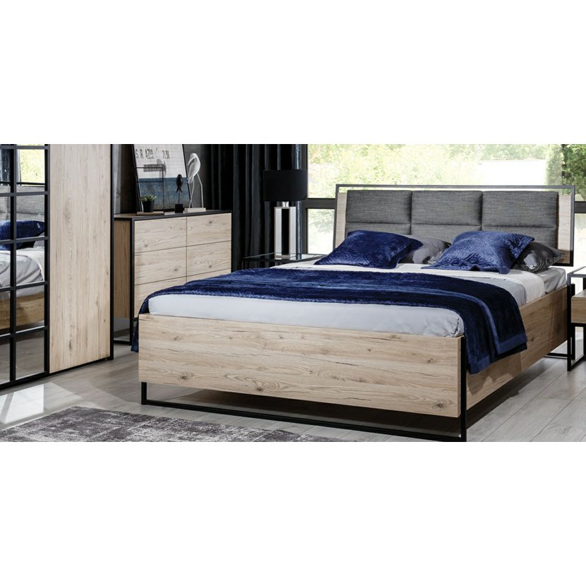 Postel Glass Loft je moderní dvoulůžko v atraktivním loftovém stylu, které kombinuje dekor světlého dřeva s elegantními černými kovovými nohami a vytváří tak nadčasový industriální vzhled. Dominantou postele je pohodlné čalouněné čelo s jemným prošíváním, které poskytuje komfortní oporu při čtení nebo relaxaci. Konstrukce je vyrobena z kvalitní laminované nábytkové desky a doplněna pevnými kovovými prvky, což zajišťuje stabilitu a dlouhou životnost. Postel je dostupná v několika rozměrech. Díky svému designu se skvěle hodí do moderních i industriálně laděných ložnic a lze ji snadno kombinovat s dalším nábytkem z kolekce Glass Loft.