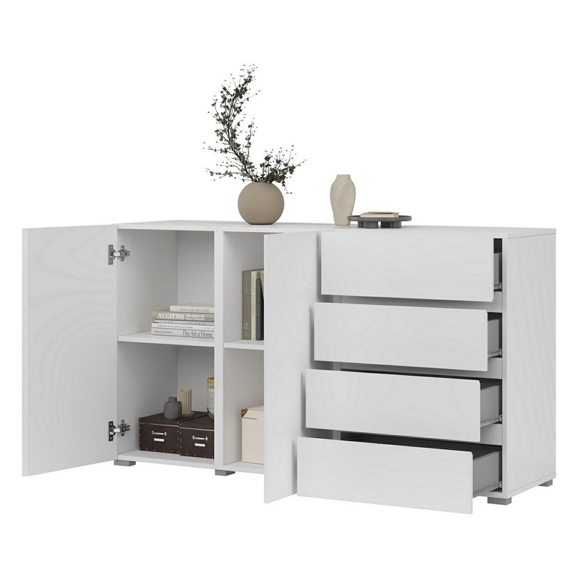 Komoda Asymetric v dekoru dubu wotan - 4 zásuvky, 2 dvířka