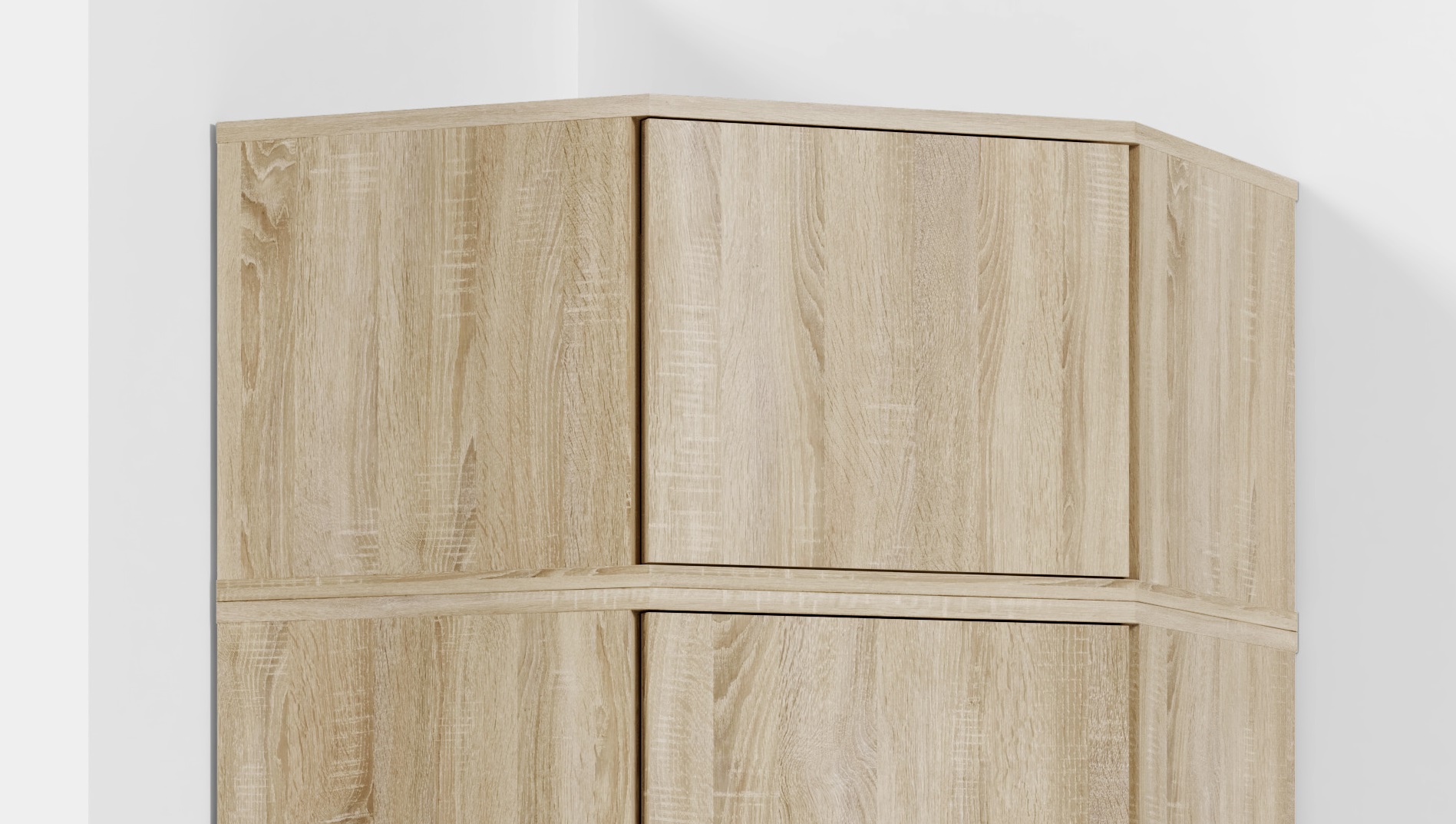 Nástavec na rohovou skříň Emi je praktickým pomocníkem při nedostatku úložného prostoru.