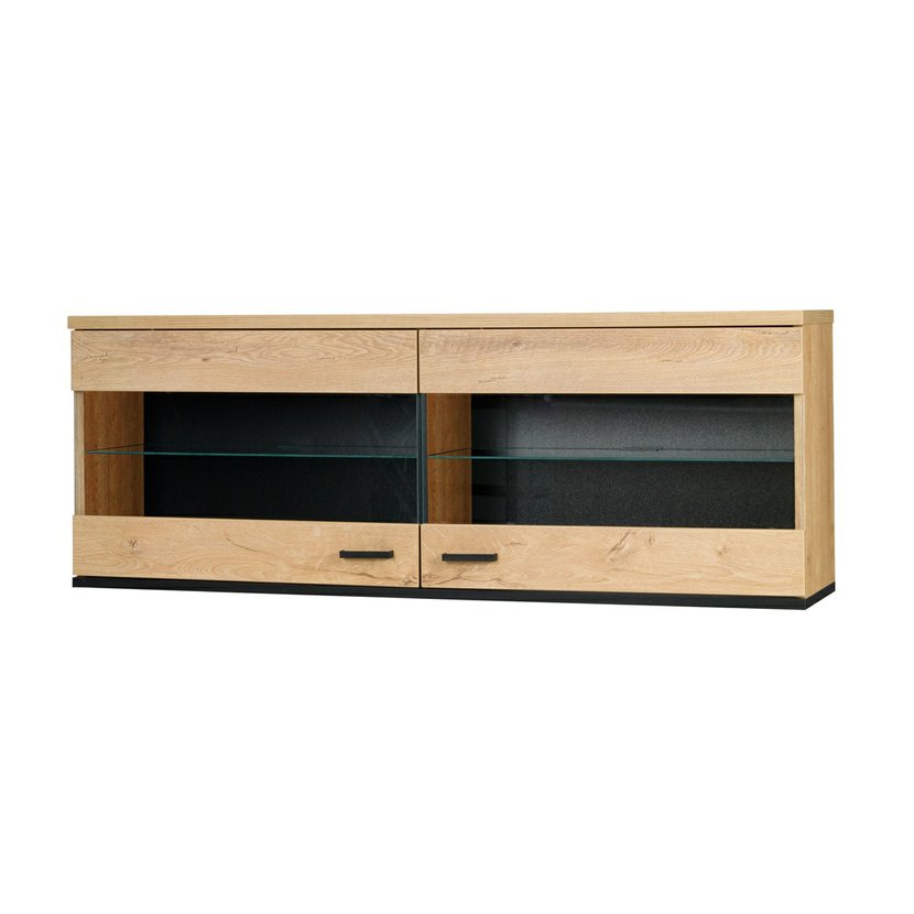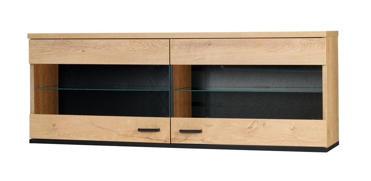 Nástěnná skříňka John 9 s osvětlením - dub lefkas / černá