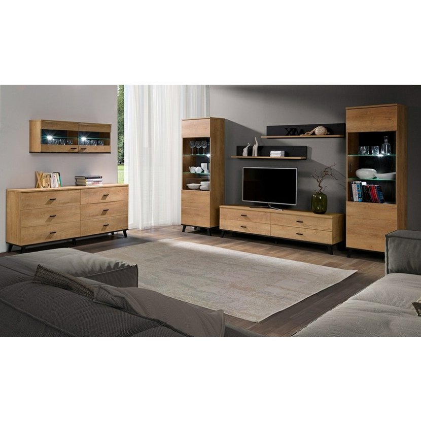 Velká šuplíková komoda John 5 - dub lefkas / černá