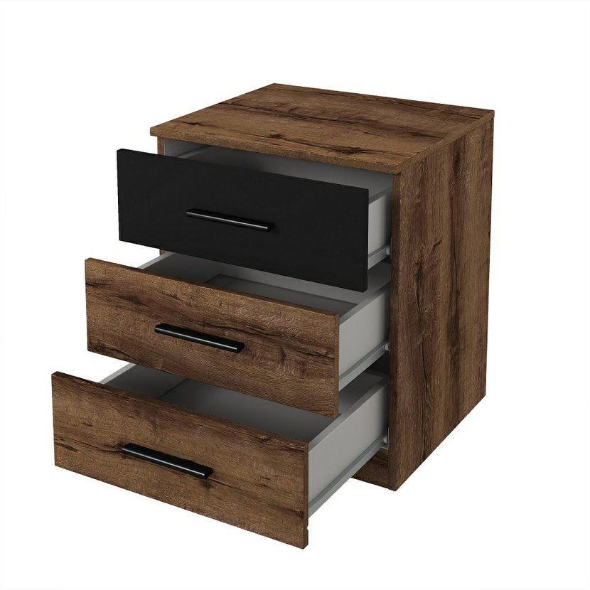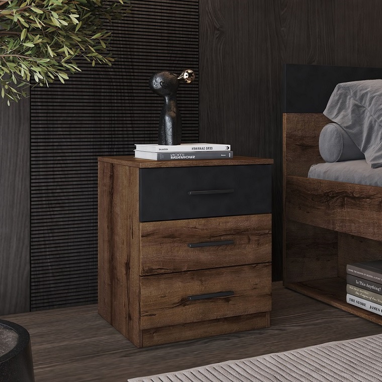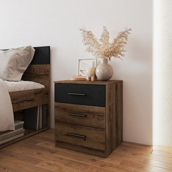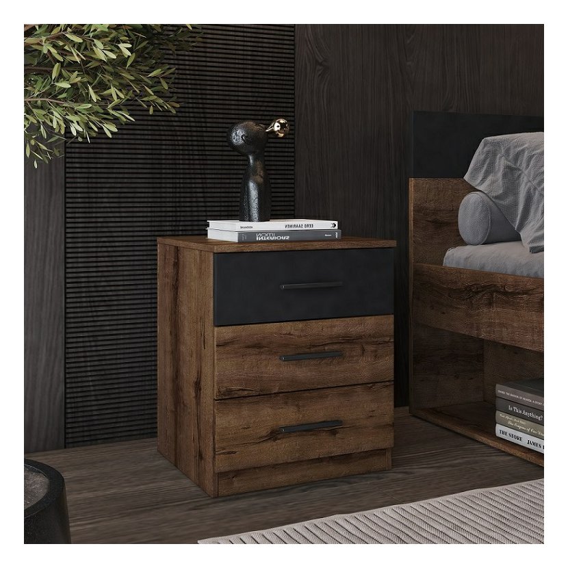 Dopřejte své ložnici stylový a funkční doplněk s nočním stolkem Beta se šuplíky. Tento stolek je součástí oblíbené kolekce Beta a svým charakteristickým designem osloví zejména ty, kteří oceňují industriální styl a praktická řešení. Noční stolek v moderní barevné kombinaci dubu monastery a matné černé je vyroben z odolné laminované dřevotřískové desky (LTD) s ABS hranami. Nabízí vám dostatek prostoru na horní desce pro lampu a budík, zatímco praktické šuplíky skryjí vše, co chcete mít po ruce i před spaním – od knihy po drobné osobní předměty. Perfektně ladí s ostatními prvky nábytku z řady Beta, ať už se jedná o komodu nebo postel.