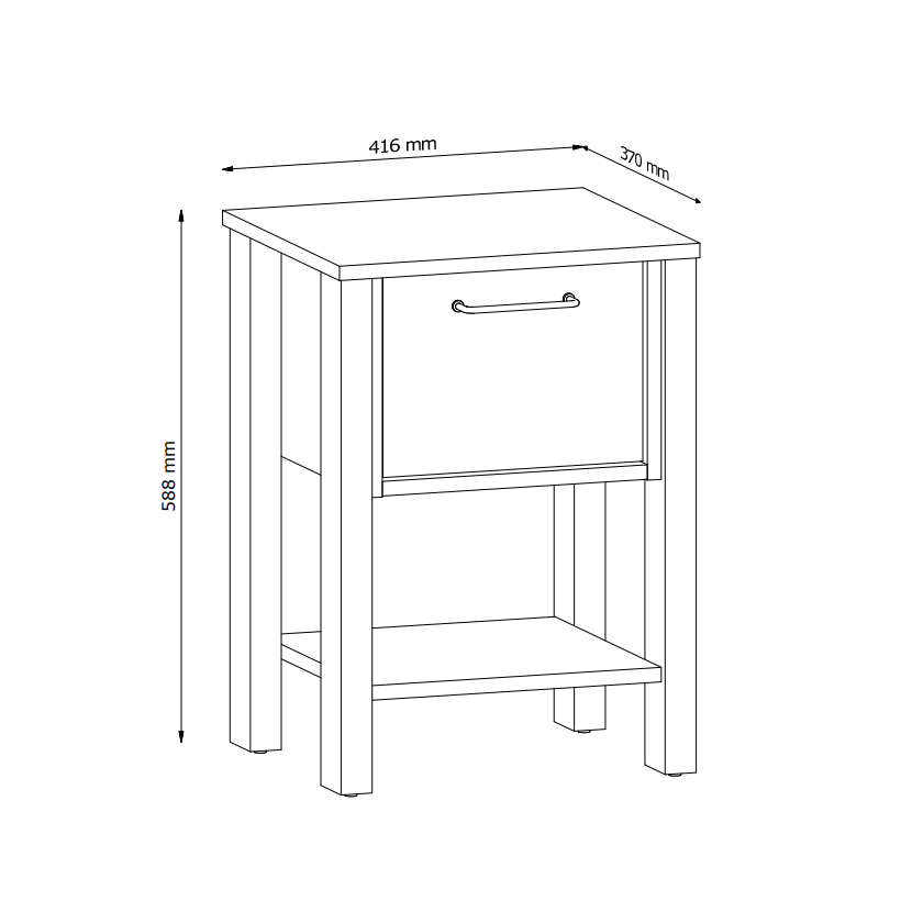 síla materiálu: horní deska 16 mm / spodní police 16 mm / nohy 36 mm