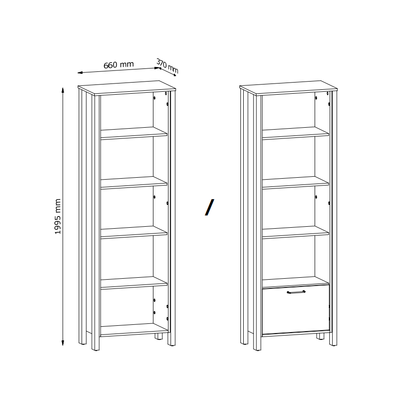 síla materiálu: horní deska 16 mm / police 16 mm / nohy 36 mm