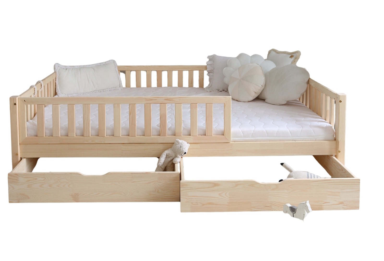 Dětské postele s úložným prostorem jsou nejčastěji vybaveny zásuvkami pod matrací, které poskytují dostatek místa pro uložení ložního prádla, sezónních věcí nebo hraček. Některé modely nabízejí i integrované poličky, skříňky či výklopné mechanismy, které umožňují přístup k úložnému prostoru přímo pod matrací.