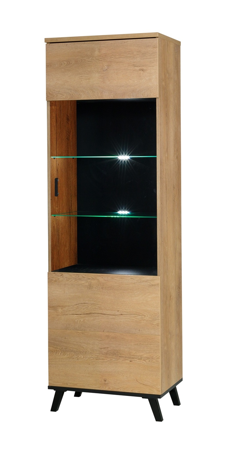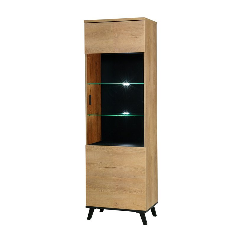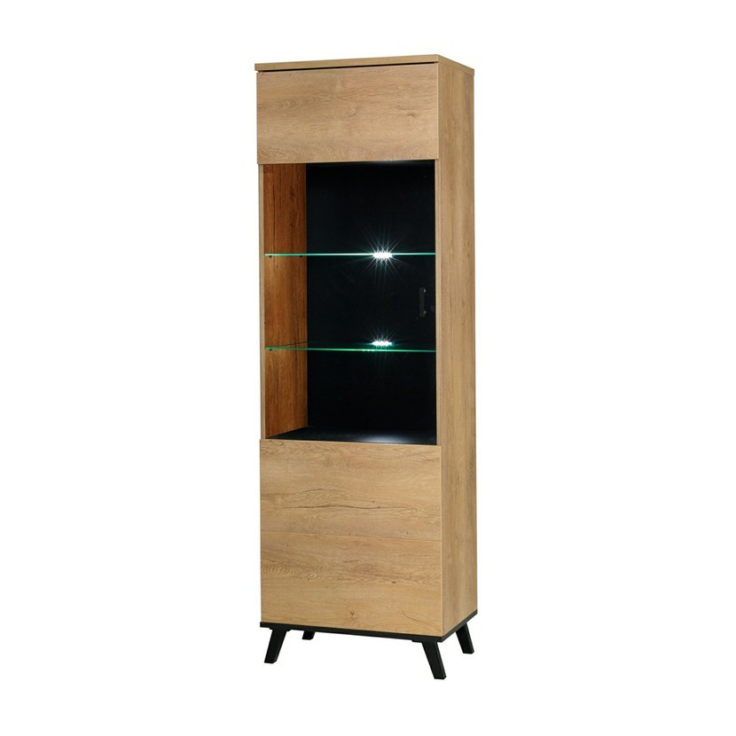 Prosklený regál John 2 bez osvětlení - dub lefkas / černá