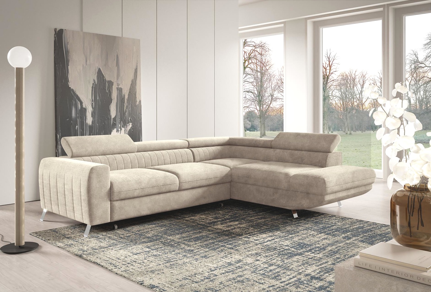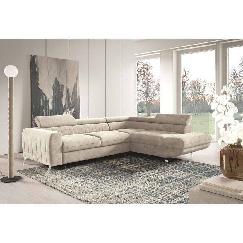 Elegantní, komfortní a zároveň praktická – taková je rohová sedací souprava Amalfi, která dodá vašemu obývacímu pokoji vzdušnost i styl. Světle béžová tkanina Dunbar s jemnou strukturou působí útulně a nadčasově, takže se skvěle kombinuje s přírodními i moderními doplňky. Souprava Amalfi nabízí pohodlné sezení díky kvalitní pěnové výplni a ergonomicky tvarovaným opěrkám, které lze polohovat podle potřeby. V několika jednoduchých krocích ji snadno rozložíte na příležitostné lůžko, ideální pro hosty. Nechybí ani praktický úložný prostor, do kterého uložíte deky, polštáře nebo ložní prádlo.