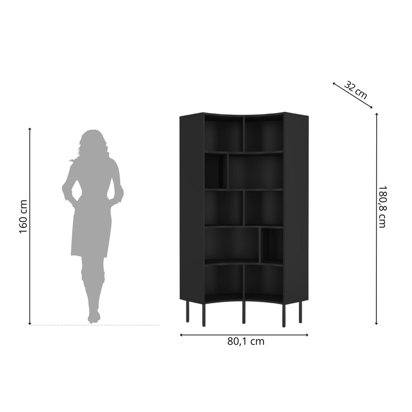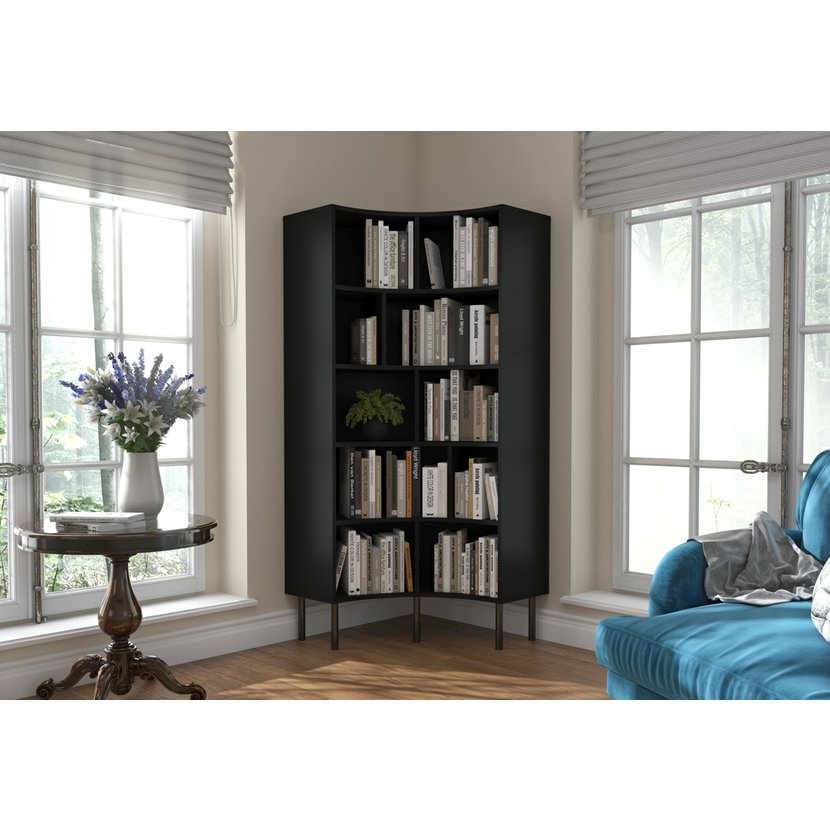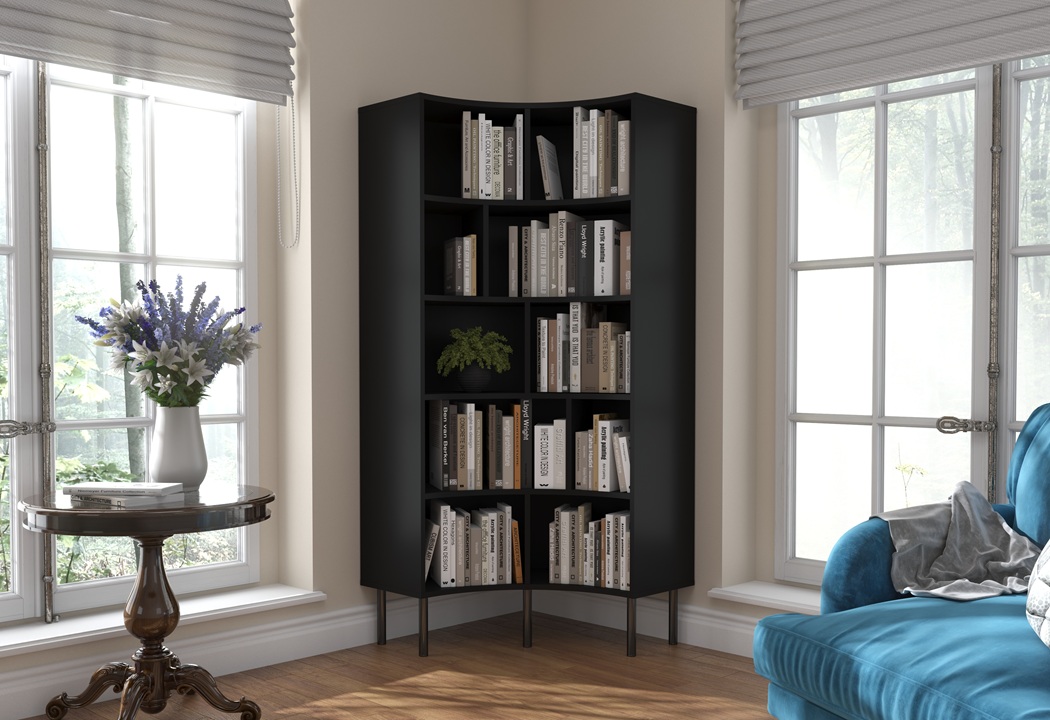 Stylový regál Skandica Horn - černá, knihovna do rohu