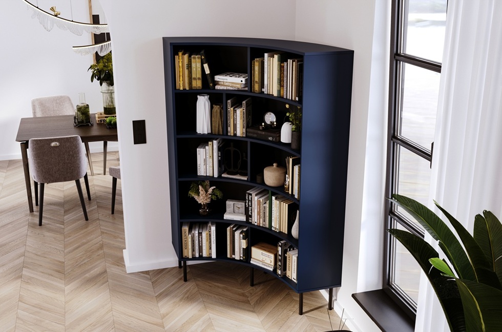 Stylový regál Skandica Horn - černá, knihovna do rohu