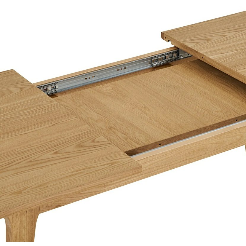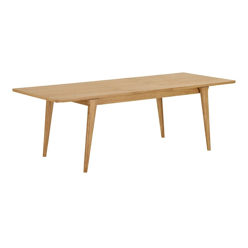 Další parametry a vlastnosti: materiál nohou: dubový masiv horní deska: dubová dýha, MDF polotvrdá dřevovláknitá deska max.zatížení desky: 40 kg rozkládací, délka po rozložení: 230 cm barevné provedení: přírodní dub