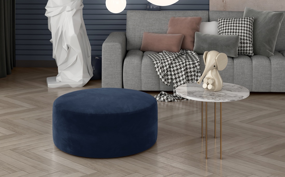 Dodejte interiéru šmrnc s moderním taburetem Bero. Je potažený příjemnou sametovou látkou v elegantním tmavě modrém odstínu a skvěle poslouží jako podnožka, doplňkové sezení či designový prvek. Taburet disponuje pevnou konstrukcí z dřevotřísky a pohodlným čalouněním z odolné sametové látky.