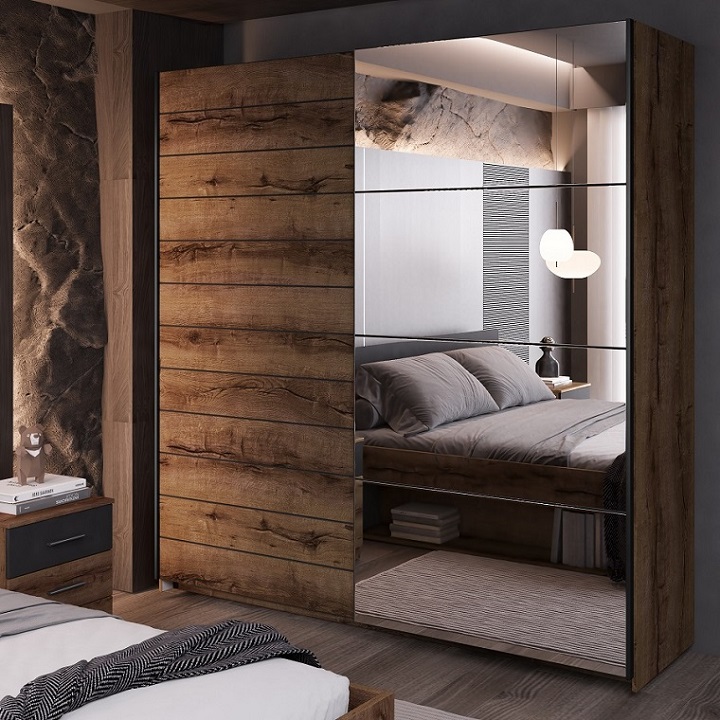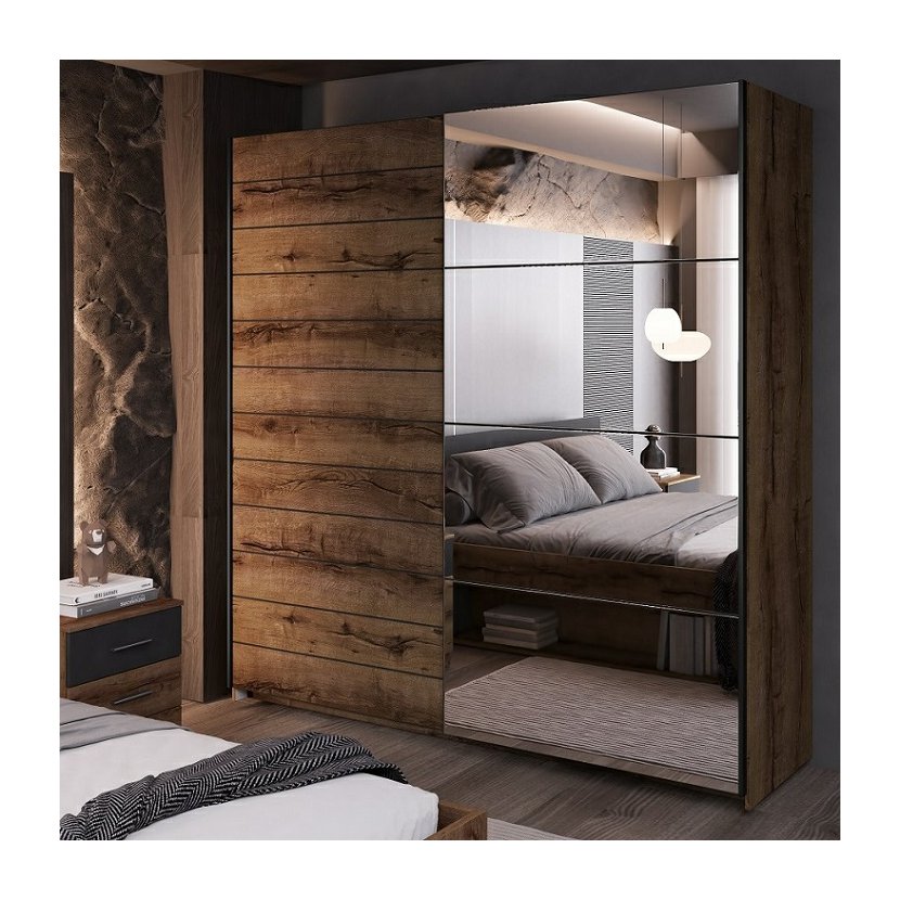 Stylová šatní skříň se zrcadlem Bono 200 cm - dub artisan