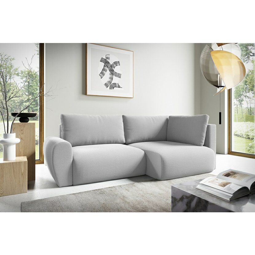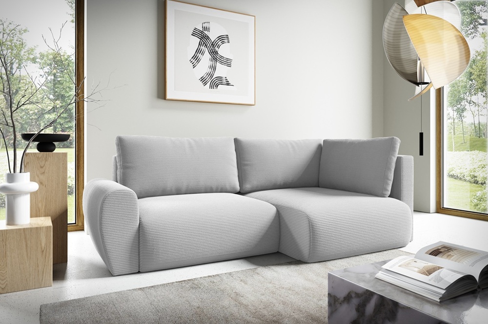 Souprava disponuje malým úložným prostorem na lůžkoviny a lze ji jednoduše rozložit na plochu pro příležitostné přespání. Měkké opěrné polštáře a příjemný potahový materiál s jemnou strukturou dodávají sedačce elegantní vzhled a vysoký komfort.