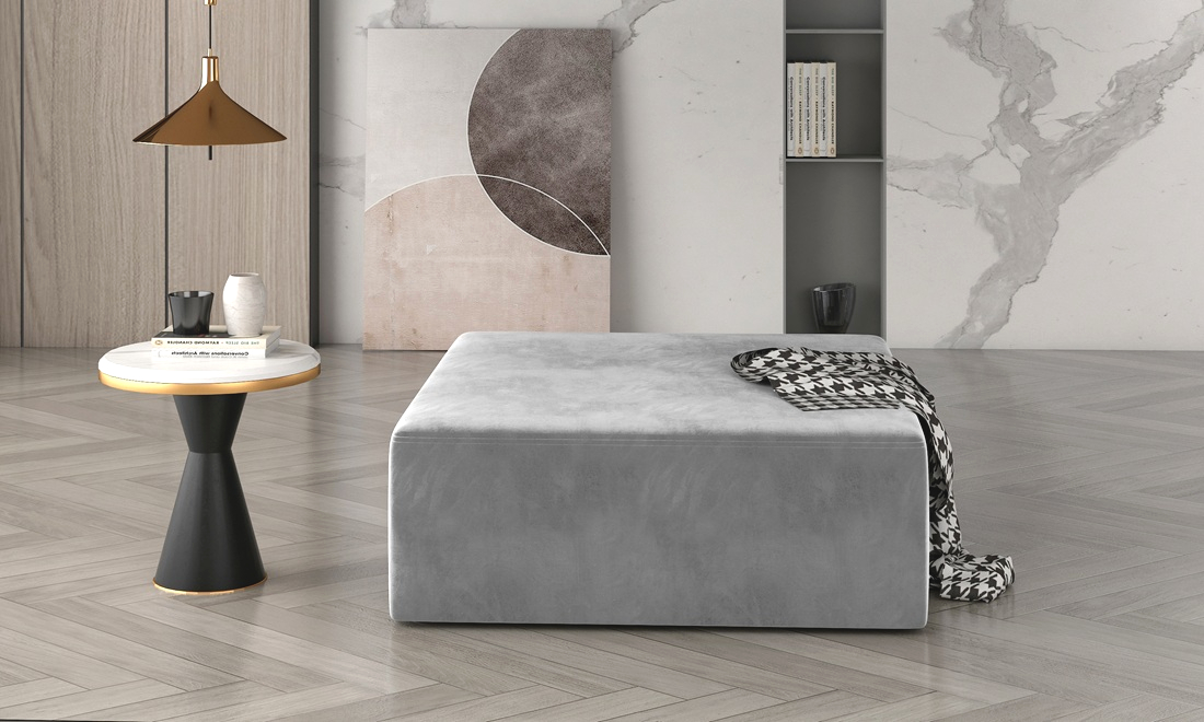 Vsaďte na eleganci a jednoduchost s čalouněným taburetem Kelim ve světle šedém sametovém čalounění. Tento prostorný čtvercový taburet vyniká nadčasovým designem, který se snadno kombinuje s jakýmkoli stylem interiéru – od moderního až po skandinávský. Sametová látka v jemném světle šedém odstínu dodává interiéru svěžest, vzdušnost a nádech luxusu. Taburet se perfektně hodí jako pohodlná podnožka, doplňkové sezení nebo stylový odkládací prvek k pohovce či křeslu. Taburet Kelim ve světle šedém sametu je ideální volbou pro ty, kdo hledají kombinaci stylu, funkčnosti a pohodlí. Skvěle doplní interiér v neutrálních tónech i jako decentní kontrast k výraznějším barvám.