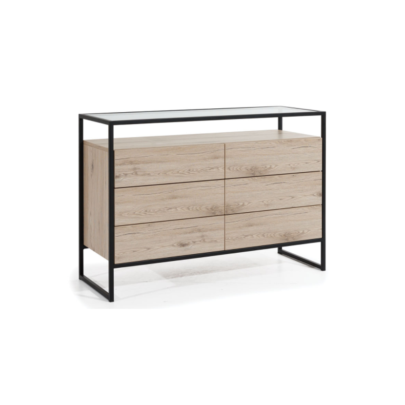 Velká šuplíková komoda John 5 - dub lefkas / černá