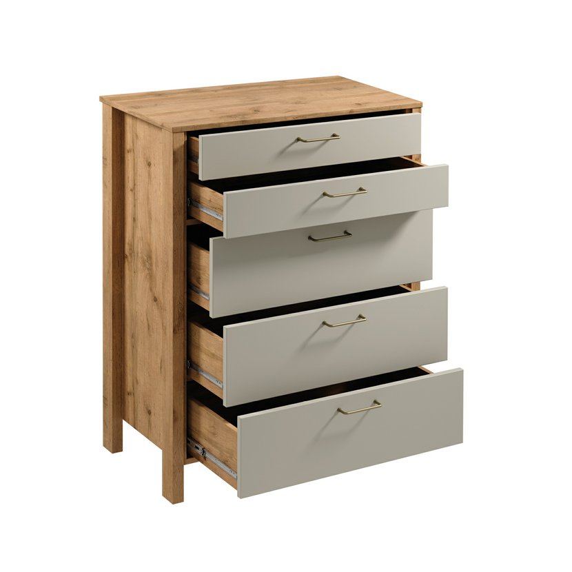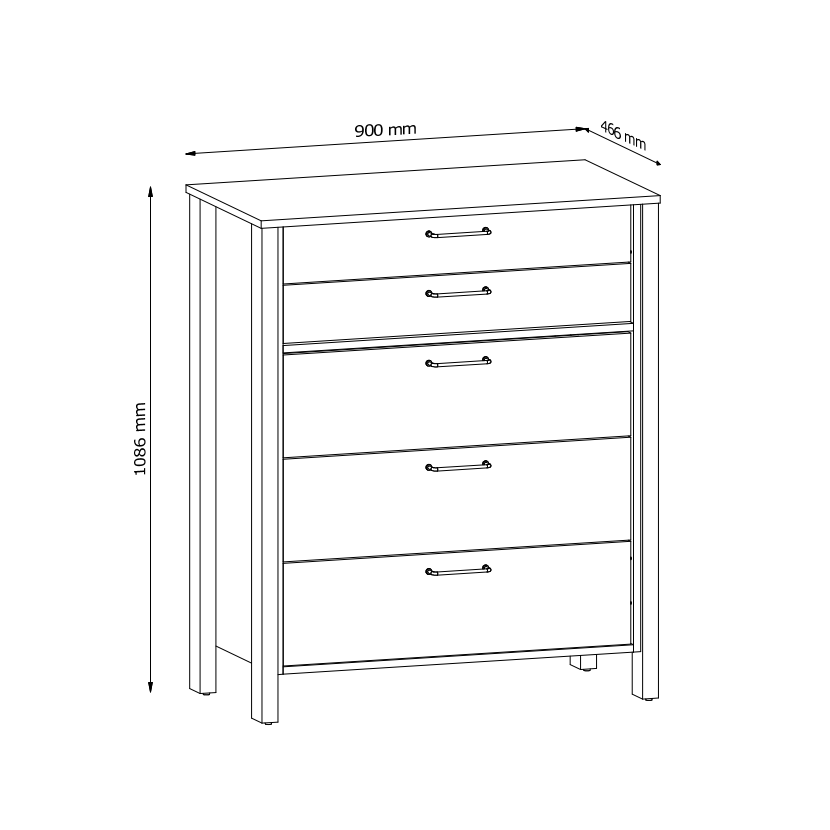 síla materiálu: horní deska komody 16 mm / šuplíky 18 mm / nohy 36 mm