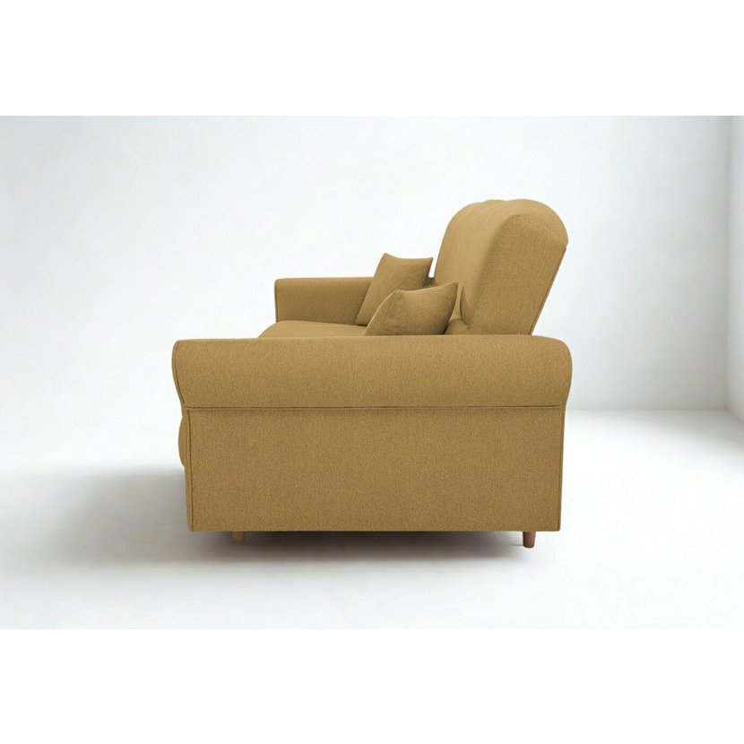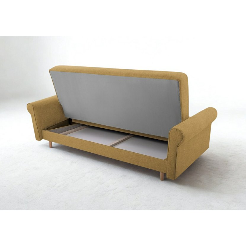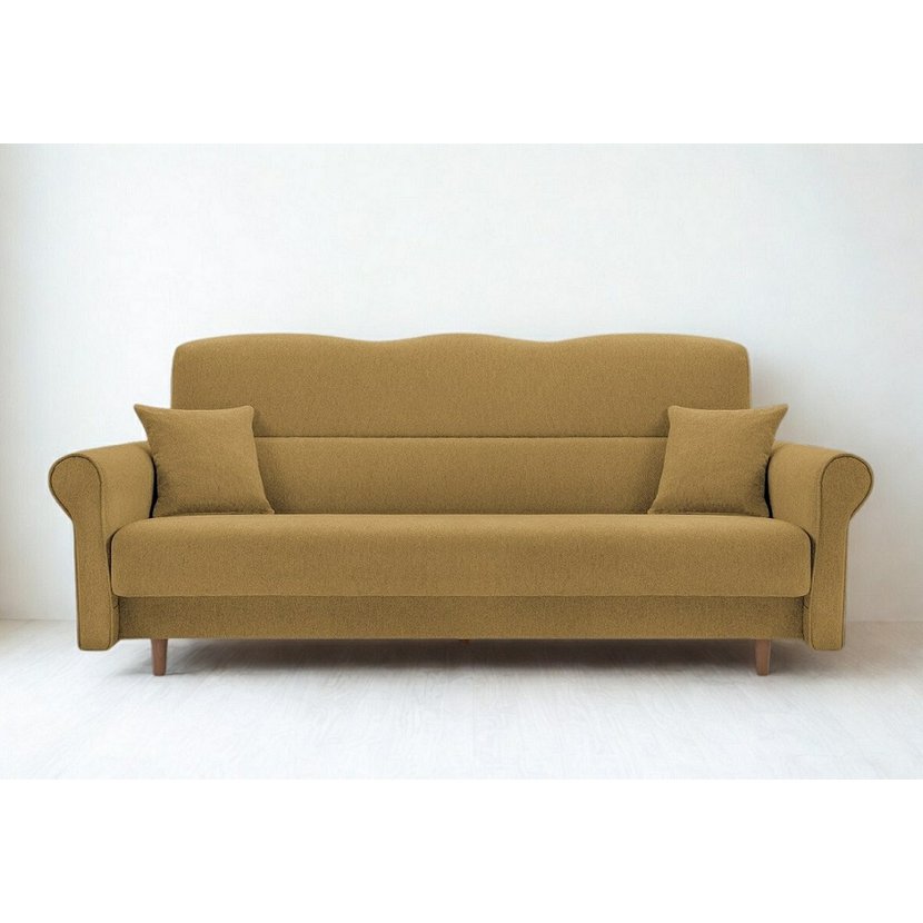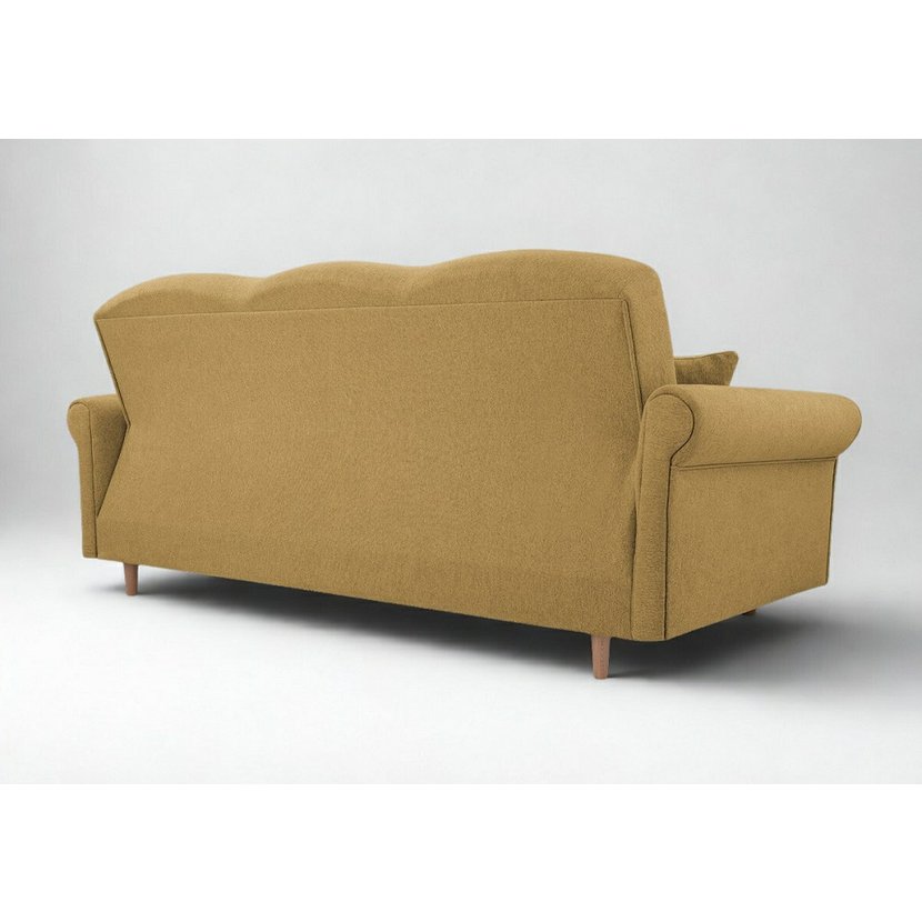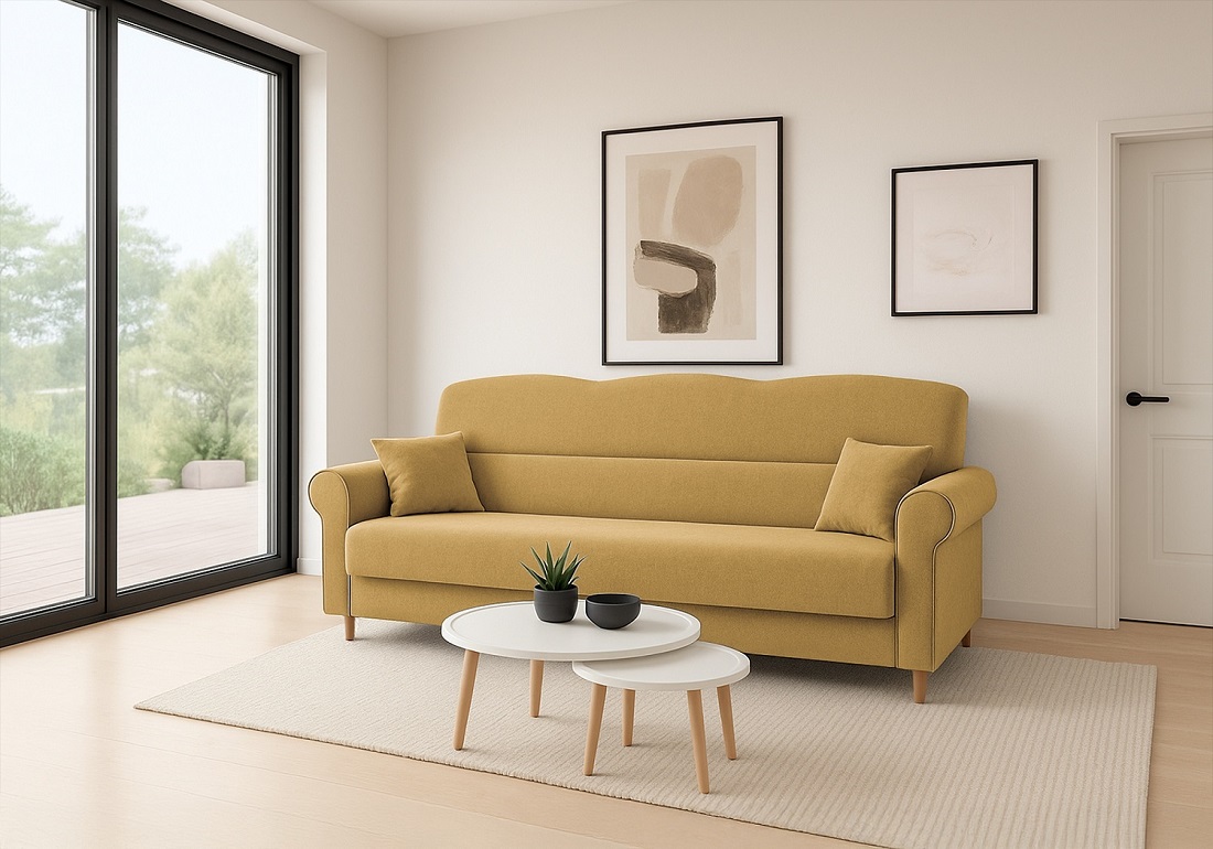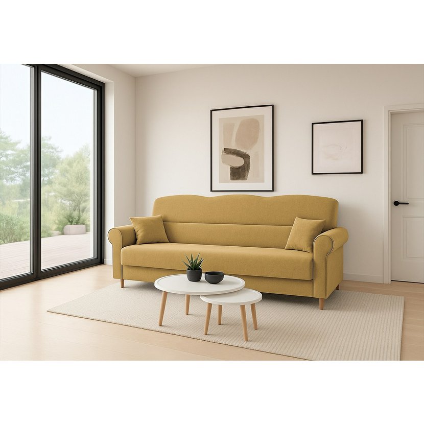 Třímístná pohovka Florine s rozkládací funkcí v hořčicově žluté barvě je stylovým a praktickým doplňkem vašeho obývacího pokoje, který přináší kombinaci designu, pohodlí a funkčnosti. Pohovka nabízí prostorné posezení pro tři osoby, rychle se rozkládá na pohodlné lůžko pro hosty a disponuje praktickým úložným prostorem pro lůžkoviny či doplňky. Hořčicově žluté čalounění dodává interiéru teplý akcent a snadno se kombinuje s moderním i klasickým nábytkem. Díky pevné konstrukci z masivu a dřevotřísky a komfortní výplni s pružinami typu Bonell je Florine ideální volbou pro každodenní relaxaci i občasné spaní, což z ní činí skvělý kus nábytku s výborným poměrem ceny a kvality.
