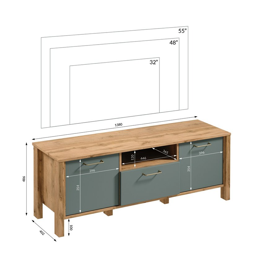 TV stolek s frézováním NOE 140 cm - černý mat/dub catania
