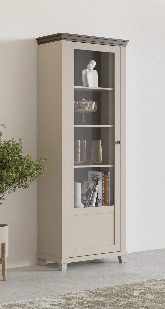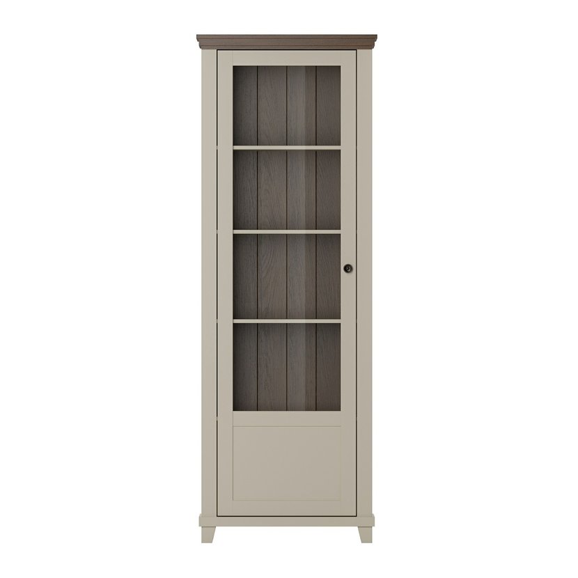 Představujeme úzkou vitrínu Evora 1 v jemném béžovém odstínu, která je efektně kombinovaná s dekorem dubu Dunin. Tato varianta nabízí vyvážený kontrast mezi světlým tónem a teplým dřevěným dekorem, ideální pro moderní i klasické interiéry. Vitrína poskytuje praktické uspořádání - skleněné výplně dvířek umožňují elegantně vystavit dekorace či sběratelské předměty, zatímco pevné části slouží pro úschovu méně dekorativních věcí. Kvalitní zpracování s pečlivě sladěnými hranami a precizními detaily podtrhuje celkovou hodnotu produktu.