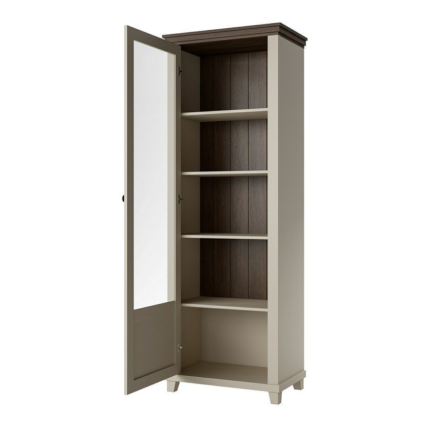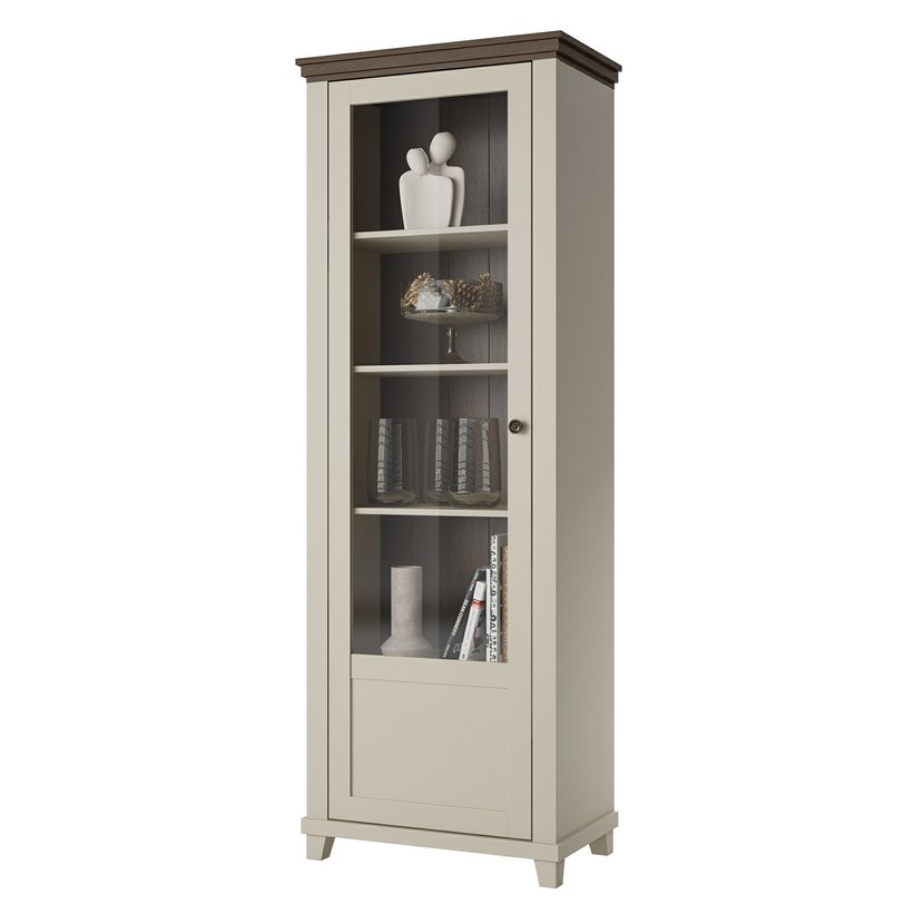 Díky kombinaci béžové barvy a dřevěného dekoru dub Dunin působí nábytek příjemně, hřejivě a přirozeně. Vitrína Evora 1 tak bude elegantním doplňkem do obývacího pokoje, chodby či jídelny - poskytuje stylové i funkční řešení úložného prostoru.