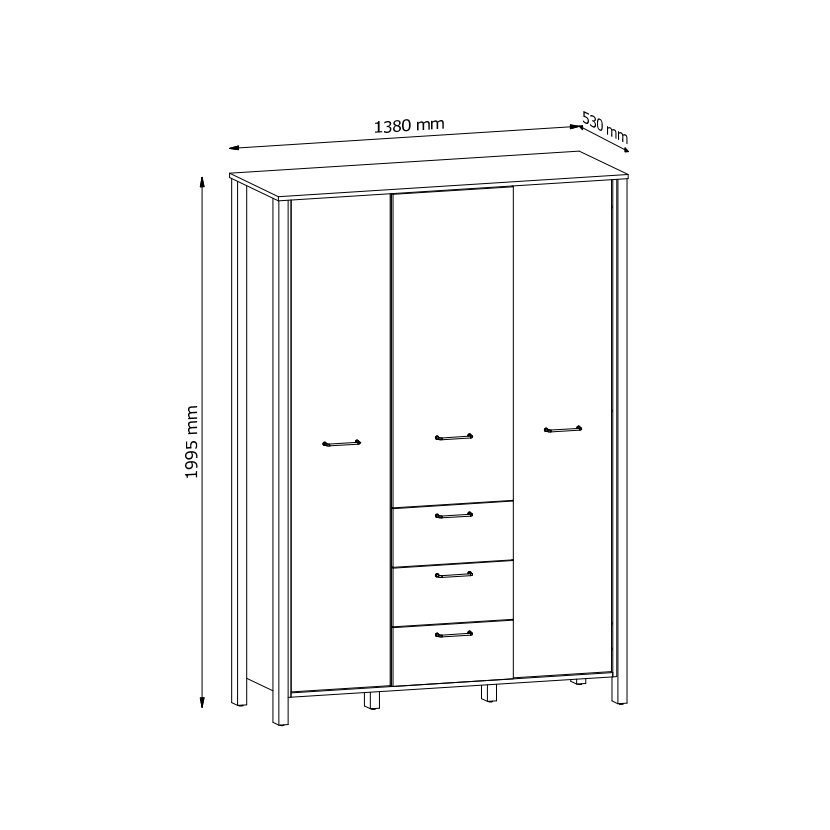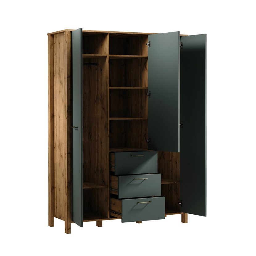 vnitřní uspořádání: 2x šatní tyč, 3x šuplík, police
