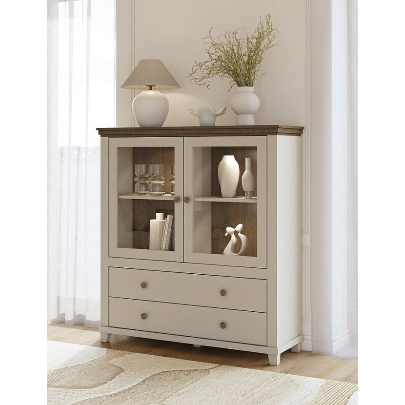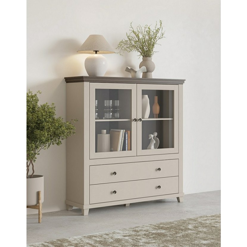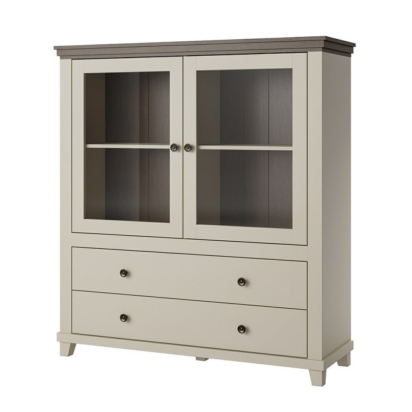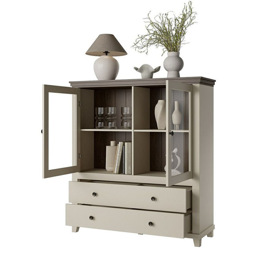 Nízká vitrína Evora 4 – elegance ve stylu Provence, tmavě zelená / dub…