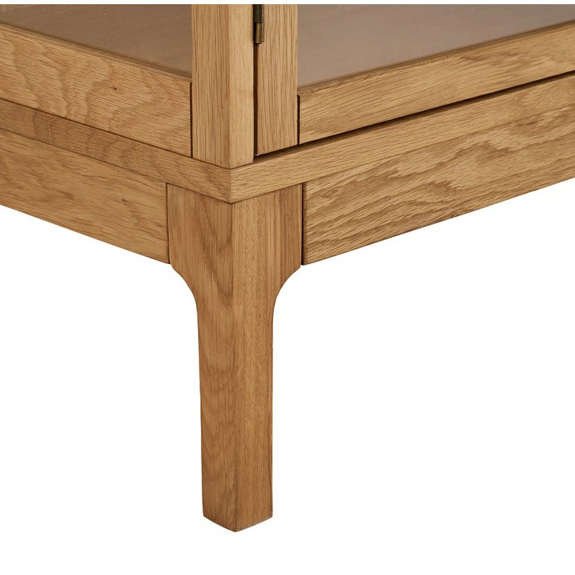 Stylová vitrína Zamora v přírodním dubovém dekoru je elegantním řešením pro vystavení dekorací, porcelánu, knih nebo suvenýrů a zároveň poskytuje praktický úložný prostor. Prosklená čelní dvířka s tvrzeným sklem snadno odhalí krásu vašeho interiéru a chrání vystavené předměty před prachem. Robustní konstrukce z kvalitních materiálů zajišťuje dlouhou životnost a stabilitu, zatímco jednoduchý skandinávský design se přirozeně hodí do moderních i klasicky laděných interiérů obývacího pokoje, jídelny nebo kanceláře. Vitrína Zamora je ideálním doplňkem pro ty, kdo chtějí kombinovat funkčnost s nadčasovou estetikou.