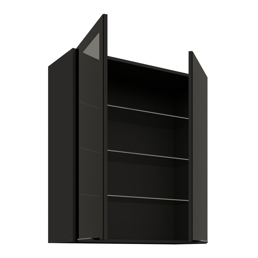 přední sklo: Antisol grafitový, tvrzené, dokola leštěné sklo - tl. 4 mm, skleněné police: průhledné, tl.5 mm