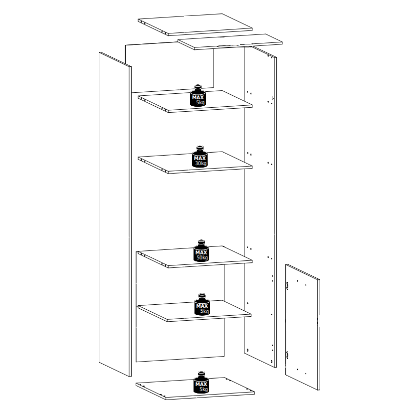 dvířka: MDF polotvrdá dřevovláknitá deska - 18 mm